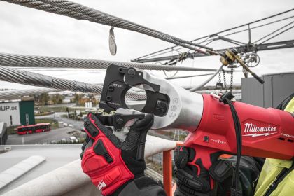 Hydraulické nůžky na kabely FORCE LOGIC™ stříhají kabely ACSR/ACSS ⌀44 mm za méně než 9 vteřin se sílou 77,8 kN.
