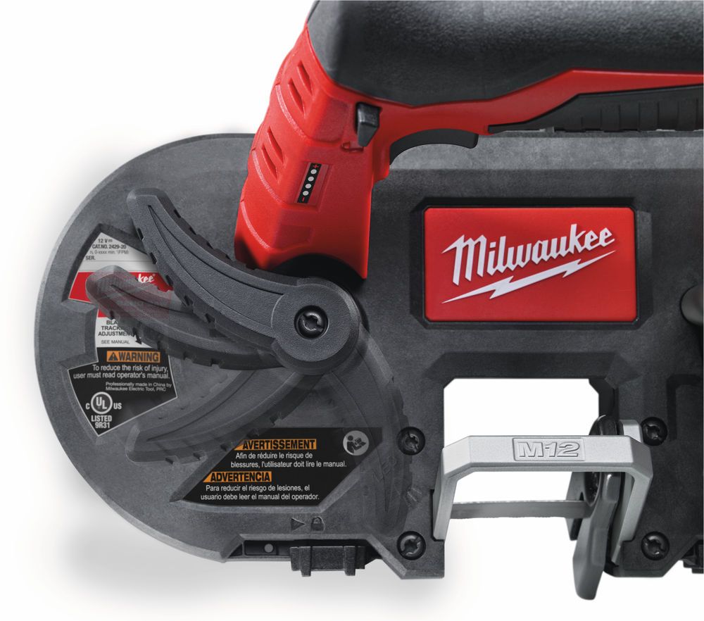 Aku pásová pila MILWAUKEE M12 FBS64-0C , Li-ion 12 V, otáčky 0 - 174 ot./min, kapacita řezání 64x64 mm, délka pilového plátku 77,6 cm, hmotnost 3,2 kg.