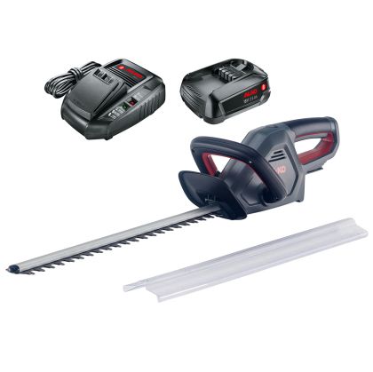 Protiběžně se otáčející, diamantem broušený bezpečnostní nůž má délku řezu 45 cm a čistý řez, aniž by se svíral nebo zasekl. Tloušťka řezu je 15 mm. S pouhými 2,0 kg (bez baterie) jsou akumulátorové nůžky na živý plot HT 1845 výrazně lehčí než jakýkoli benzínový model. Zařízení s elektromotorem s nízkými vibracemi a dobrým rozložením hmotnosti, stejně jako ergonomické rukojeti, umožňují špičkové vyvážené ovládání nářadí a obzvláště neunavující práci, například na vysokých živých plotech! S Li-Ion akumulátorem AL-KO 18 V máte přístup k různým dobám chodu a nabíjení, protože si můžete vybrat ze čtyř různých velikostí Ah. Můžete si vybrat mezi 2,5 / 4 / 5 a 6 Ah bateriemi. Prázdná baterie se dobíjí mezi 60 a 130 minutami. (V závislosti na kapacitě baterie se doba nabíjení pohybuje mezi 60 a 130 minutami. Pro ještě rychlejší nabíjení lze použít i rychlonabíječku baterií FC100 Li). Li-ion baterie je velmi odolná, nenáročná na údržbu a snadno a pohodlně se nabíjí každý bez samovybíjení nebo paměťového efektu. Naše dvouletá záruka výrobce zahrnuje také baterii tohoto zařízení. S řadou baterií AL-KO 18 V Bosch Home & Garden kompatibilních jste díky našemu četnému zahradnímu nářadí dokonale vybaveni pro každou aplikaci. Nabíjecí baterie a nabíječky jsou navíc kompatibilní se všemi nástroji různých výrobců, které pracují se systémem dobíjecích baterií BOSCH 18 V Home & Garden.