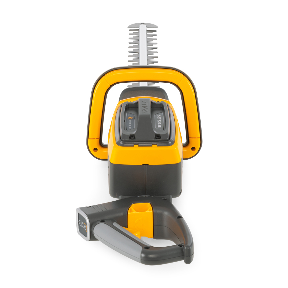 Aku plotostřih STIGA HT 500e , bateriový program - řada 5, napětí 48 V, výkon 420 W, délka řezu 510 mm, otočná 180 ° rukojeť, hmotnost 3,7 kg.