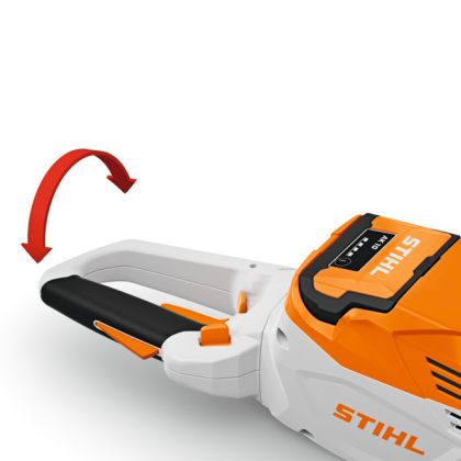 Stisknutím tlačítka můžete multifunkční rukojeť otočit o 90° doleva a doprava. Díky tomu můžete s nůžkami řezat v různých směrech. Oblouková rukojeť podporuje energeticky úsporné používání nůžek. Kromě toho můžete nůžky na živý plot snadno ovládat a vést pravou i levou rukou. Díky diamantem broušeným a tvrzeným nožům můžete přesně a rychle stříhat a upravovat velké živé ploty, keře nebo jiné rostliny. Díky geometrii nože ve tvaru kapky s roztečí zubů 34 mm, jsou větve čistě řezány s velmi dobrým řezným výkonem. Pokud se v nožích zaseknou nepoddajné větve, můžete jednoduchým stisknutím hlavního vypínače spustit systém proti zasekávání, který změnou směru otáčení opět umožní nožům volný chod. Antivibrační systém STIHL snižuje vibrace rukojeti, a chrání tak vaše svaly a klouby, takže můžete pohodlně pracovat i delší dobu. Akumulátorové nůžky na živý plot mají řeznou délku 60 cm.