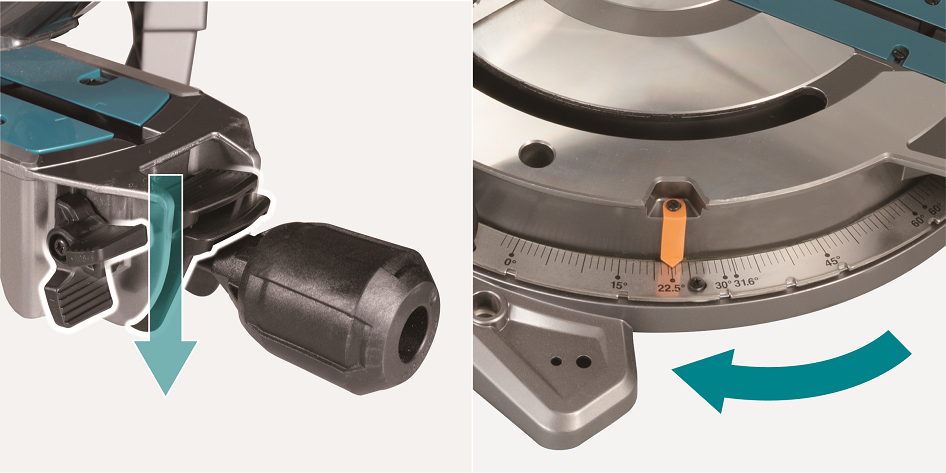 Nové řešení nastavení pokosového/úkového úhlu pro pohodlnou práci.