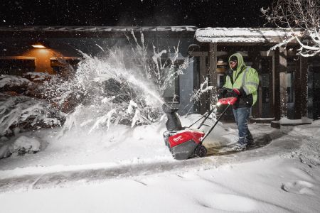 Aku sněhová fréza MILWUAKEE M18 F2SSBL-0 , 2x18 V Li-ion, šířka záběru 53,3 cm, max. hloubka 30,5 cm, odhoz 10,7 m, hmotnost 37 kg.