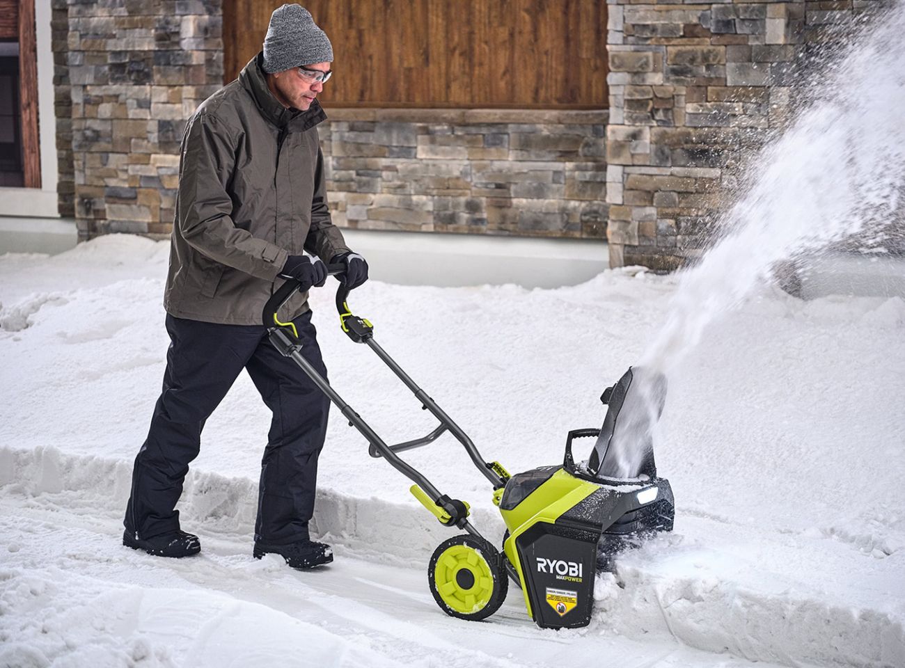Aku sněhová fréza RYOBI RY36STX45A-140 , 36 V Li-ion / 4.0 Ah, šířka záběru 45 cm, hmotnost 21,32 kg.