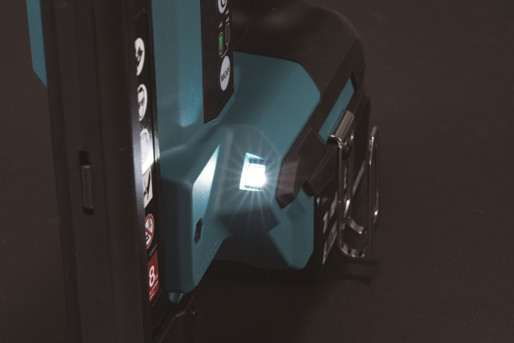 Ergonomicky tvarované tělo stroje zajišťuje dobré vyvážení a komfortní držení i při delší práci nebo při použití nad hlavou. Pogumovaná rukojeť snižuje vibrace a zlepšuje kontrolu nad nástrojem. Spoušť umožňuje přesné dávkování jednotlivých výstřelů a integrované LED osvětlení efektivně nasvěcuje pracovní plochu při práci v horších světelných podmínkách.
