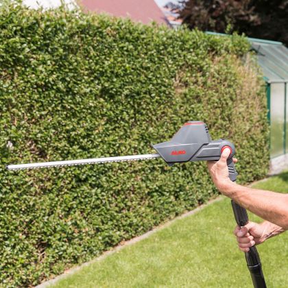 Stříhání živých plotů je opravdu snadné díky aku nůžkám na živý plot AL-KO HTA 1845 Bo Flex. Kvalitní bezpečnostní nůž o délce 45 cm zajišťuje rychlý a přesný řez. Flexibilní použití díky ohýbatelnému ostří (10 stupňů) a teleskopické násadě. Díky tomu dosáhnete na těžko dostupná místa a zajistíte všestranný přesný řez. Velmi lehké a na síti nezávislé akumulátorové nůžky na vysoké živé ploty vám nabízí pohodlný akční rádius bez zamotaných kabelů a eliminují riziko náhodného přeříznutí elektrického kabelu. Nůžky na živý plot lze skladovat prostorově úsporně díky dělitelné hřídeli.