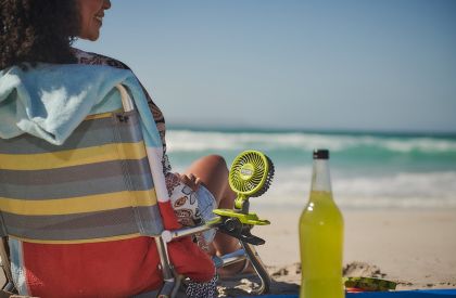 Kompaktní 4 V akumulátorový ventilátor s klipsem, který lze využít doma, při sportu, v dílně nebo v kanceláři.