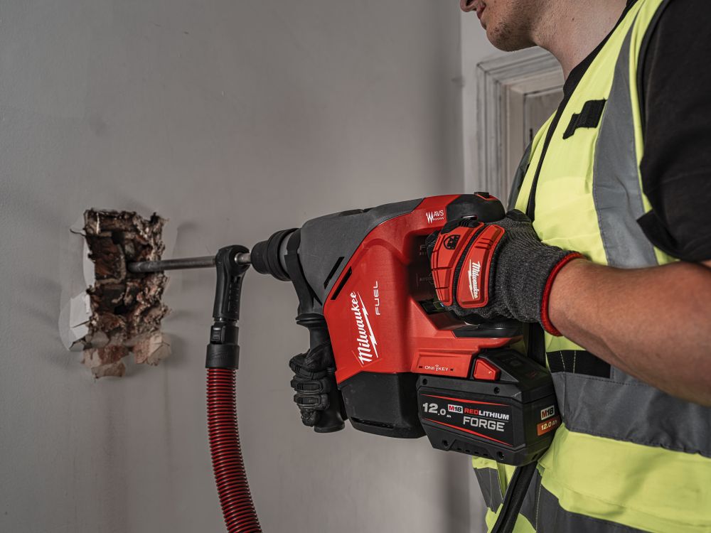 Akumulátorové vrtací a bourací kladivo M18 FUEL™ SDS-Max je vysoce výkonný profesionální stroj určený pro nejnáročnější aplikace při vrtání a sekání do betonu a zdiva. Díky kombinaci bezuhlíkového motoru POWERSTATE™, pokročilé elektroniky REDLINK PLUS™ a akumulátorového systému M18™ REDLITHIUM™ poskytuje srovnatelný výkon s elektrickými síťovými kladivy, a to bez omezení kabelem. Robustní konstrukce a vysoká energie úderu umožňují efektivní práci i v tvrdém armovaném betonu.