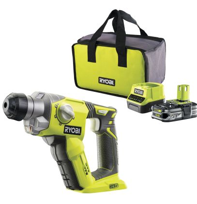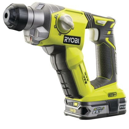 Aku vrtací kladivo SDS-PLUS  RYOBI R18SDS-125S ONE +, 18 V / 2.5 Ah, vrtací průměr 16/16/13 mm, max. utahovací moment 15 Nm, hmotnost 1,7 kg.