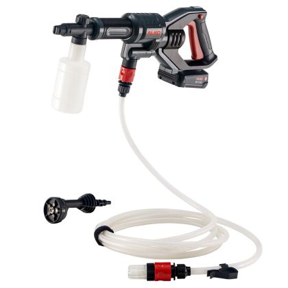 18 V li-ion baterie poskytuje maximální tlak 22 barů. Průtok vody je cca 180 l/h. Díky velmi nízké hmotnosti 1,6 kg (s baterií) a režimu ECO pro delší práci, ji lze používat velmi flexibilně. Pro vaši bezpečnost je baterie vybavena silikonovým krytem. Sací hadice o délce 6 m umožňuje nasávání vody pro čištění i ze vzdálenějších vodních zdrojů. Díky vodním tryskám 5v1 máte k dispozici 5 režimů zavlažování, včetně režimu zavlažování rostlin. Sada obsahuje také sestavenou nádobku na mýdlo.
