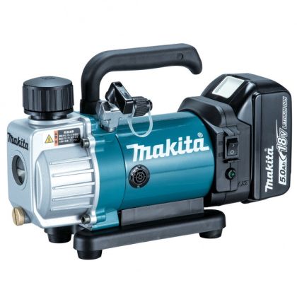 Aku vývěva MAKITA DVP180Z , 18V, objem vyčerpaného vzduchu 50 l/min, konečná úroveň podtlaku 20 Pa, množství oleje 100-115 ml, hmotnost 3,5 kg.