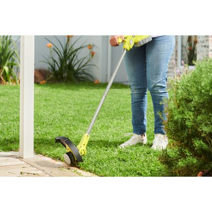 Aku vyžínač RYOBI RY18LT23A-0 ONE+ , napětí 18 V, průměr struny 1,6 mm, záběr 23 cm, hmotnost 1,3 kg.