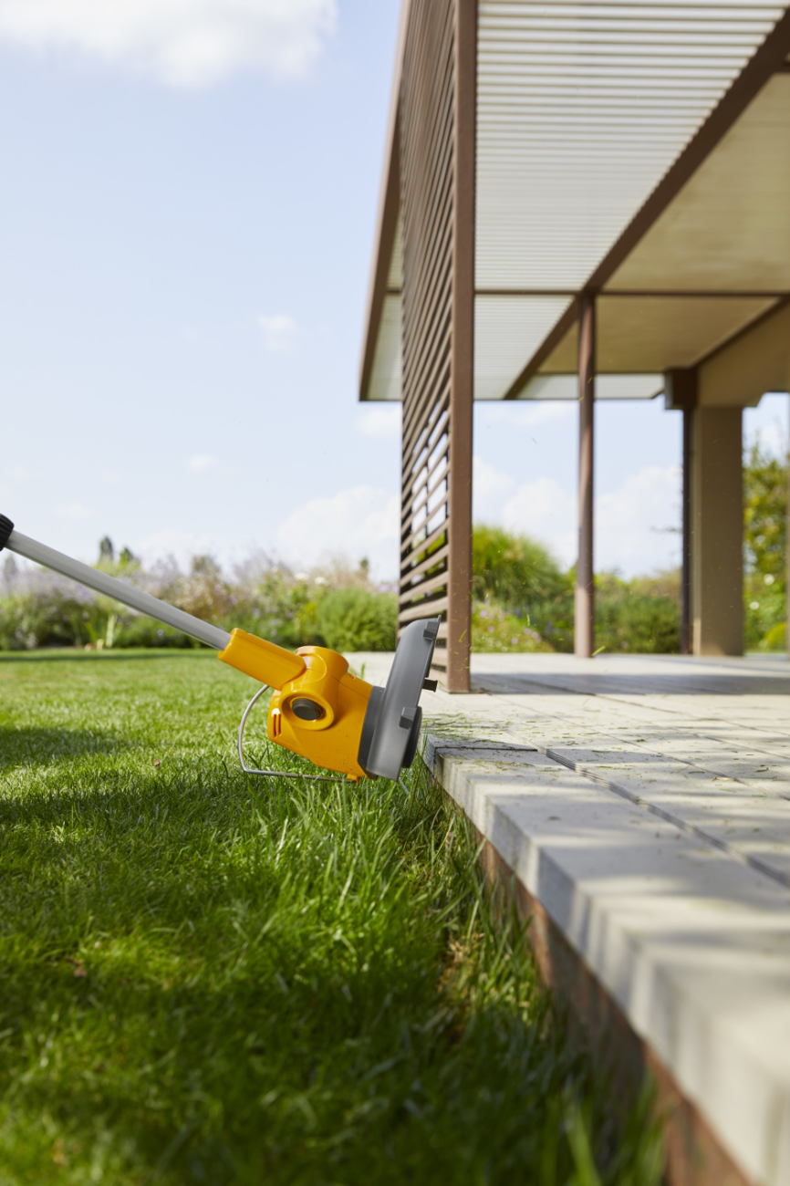 S bateriovým vyžínačem na trávu GT 100e Kit je obsekávání a lemování trávníku radostí. Tento vyžínač je vybaven výkonným motorem, optimálně vyváženou baterií 20 V 2 Ah a ergonomickou rukojetí s měkkým polstrem. Jeho automatické vysouvání struny, vám poskytne spolehlivé a nepřerušované sekání, zatímco plně nastavitelná rukojeť ve tvaru smyčky vám umožní manévrování bez namáhání. Pro vaše úplné pohodlí můžete také nastavit teleskopickou hřídel GT 100e Kit podle vaší výšky. Jedním zmáčknutím jde přepnout z režimu obsekávání do režimu lemování okrajů trávníku. Jeho otočná hlava až do 45 °, vám také poskytne dokonalé sekání. Distanční držák umožňuje dokonalé obsekávání kolem rostlin a jiných předmětů.