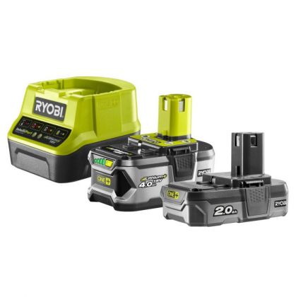 Sada RYOBI RC18120-242 ONE+, obsahuje 1x Li-ion baterii RB18L40 (18V/4,0 Ah), 1x Li-ion baterii RB18L20 (18V/2,0 Ah) a nabíječku RC18120, vhodné pro všechna zařízení ONE+.