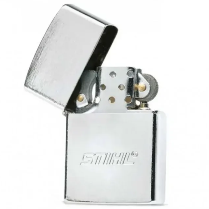 Benzínový zapalovač STIHL z nerezové oceli. Rozměry 6 x 4 cm, hmotnost 50 g. Dodává se bez náplně.