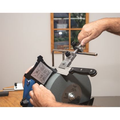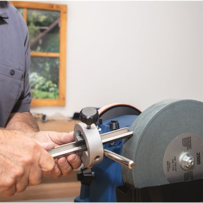 Profesionální brousící systém SCHEPPACH Tiger 7000 S se hodí výborně jak pro domácí dílny, tak i promenší provozovny a dílny, které vyžadují perfektní ostrost svých nástrojů. Na ovládání brousícího systému Scheppach je skvělé, že díky jednoduchému ovládání a systému přípravků může nástroj dokonale nabrousit i úplný začátečník a uchránit tak mnohdy drahé nástroje před zničením. Základem pro správně nabroušené ostří je speciální široký kámen o průměru 250 mm, který v sobě, pro ještě dokonalejší funkci, obsahuje mikročástice oxidu hliníku. Můžete tak, vedle běžných materiálů, brousit i ostří z tvrdokovu. Pro zahlazení všech mikrootřepů a docílení perfektního výsledku slouží vyměnitelný honovací kožený kotouč. Tělo samotného stroje a uložení kotoučů je velmi stabilní, indukční motor je moderní bezuhlíkové konstrukce, takže je výkonný, bezúdržbový a velmi tichý. Nádoba na vodu je vyrobena z pevného, netříštivého plastu. Stroj je opatřen gumovými nožičkami. Jako standardní příslušenství je dodáván úhloměr, přípravek na broušení rovných ostří a abrazívní pasta. Velké množství dalších přípravků lze potom dle potřeby dokoupit.