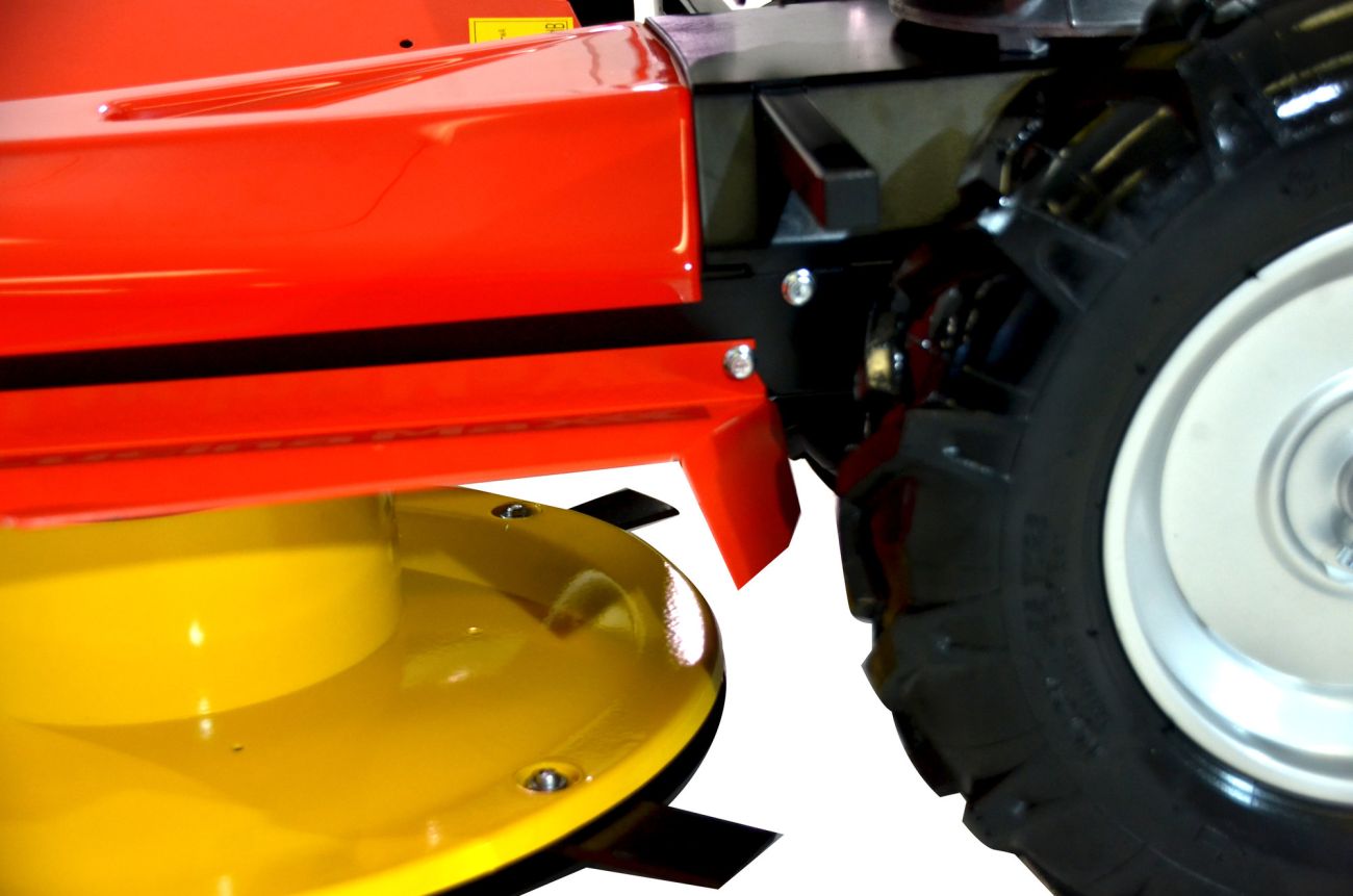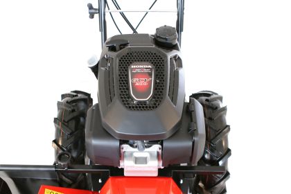 Bubnová sekačka VARI BDR-620 LUCINA Max  na přerostlou trávu, motor HONDA GCV200, 4-takt, výkon 6,5 HP, záběr 62 cm, pojezd, hmotnost 63 kg, gumová kola se šípovým vzorem.