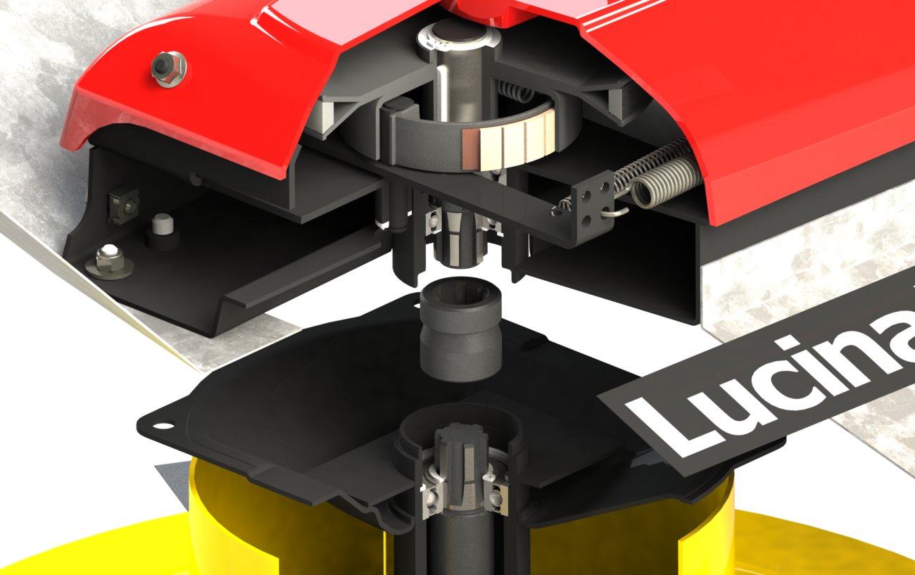 Lucina Max jako bubnová sekačka se vyznačuje perfektním vyvážením pro práci na rovině i ve svahu, má pevnou nápravu, tuhý a odolný rám s HDG plechovým, červeně lakovaným asymetrickým krytem žacího disku, který umožňuje lepší navádění sekané vysoké trávy a její řádkování. Zároveň zajišťuje mimořádnou ochranu pro obsluhu. Pracovním nástrojem sekačky je čtyřnožový žací buben – velice robustní lisovaný díl s celoplošným ocelovým podběhem, který chrání uložení nožů. Uložení žacích nožů T-Bar zvyšuje zároveň obvodovou tuhost žacího bubnu a jeho celkovou životnost.