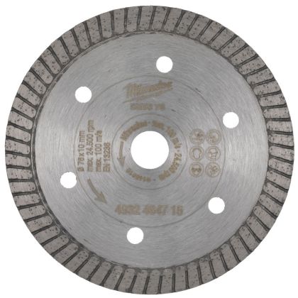 Profesionální kvalita turbo kotouče s velmi tenkým tělem pro velmi rychlé a přesné řezání bez pilin. Vhodné pro řezání tenkých materiálů jako je žula, mramorové desky a dlaždice (např. porcelán, kamenina, keramika).