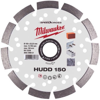 Diamantový kotouč MILWAUKEE SPEEDCROSS HUDD , průměr kotouče 150 mm, vhodný na velmi a středně tvrdé stavební materiály.