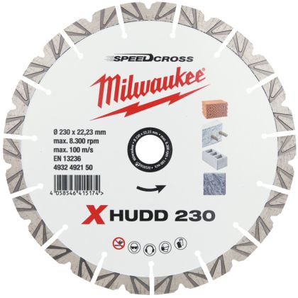 Diamantový kotouč MILWAUKEE SPEEDCROSS XHUDD , průměr kotouče 230 mm, vhodný pro všechny druhy tvrdých stavebních materiálů.