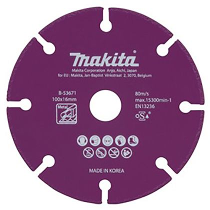 Diamantový kotouč pro aku úhlové brusky MAKITA , Ø kotouče 100 mm, pro řezání oceli, ušlechtilé oceli a umělé hmoty.