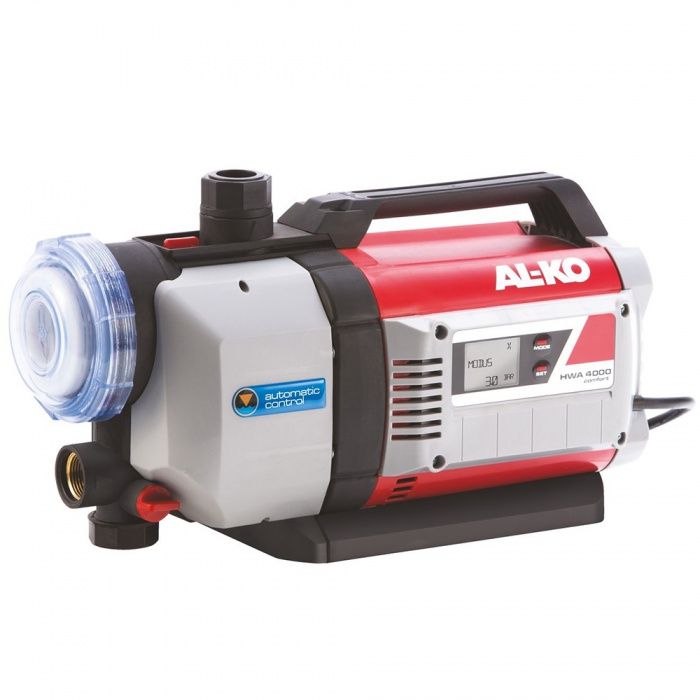 Automatická vodárna AL-KO HWA 4000 Comfort je elektronicky řízený systém pro zavlažování a zásobování vodou konstantním tlakem. Inteligentní ovládací systém Automatic Control neustále kontroluje chod čerpadla a stará se o úsporný a spolehlivý provoz vodárny při konstantním výstupním tlaku. Integrovaná ochrana běhu na sucho vypne čerpadlo, čímž zabrání jeho přehřátí. Šroubení na vstupu i výstupu jsou vyrobená z mosazi, vnitřní části čerpadla vedoucí vodu potom z nerezové oceli.