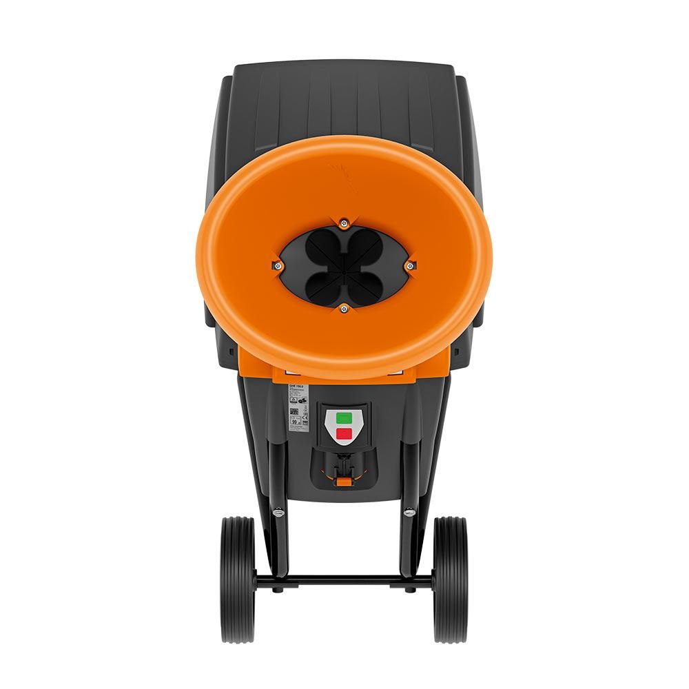 Silný elektrický zahradní štěpkovač STIHL GHE 150 s plnícím otvorem ve tvaru čtyřlístku Se spínačem krytým fólií a nožovým kotoučem se sníženou hlučností. Patentovaná řezací technika Multi-Cut 150. Ideální ke zpracování větví do průměru 35 mm.