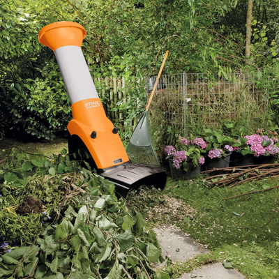 Silný elektrický zahradní drtič STIHL GHE 250 se šikmou plnící násypkou Se spínačem krytým fólií a nožovým kotoučem se sníženou hlučností. Patentovaná řezací technika Multi-Cut 250. Ideální ke zpracování většího množství zahradního odpadu ale i větví keřů a stromů do průměru 35 mm.