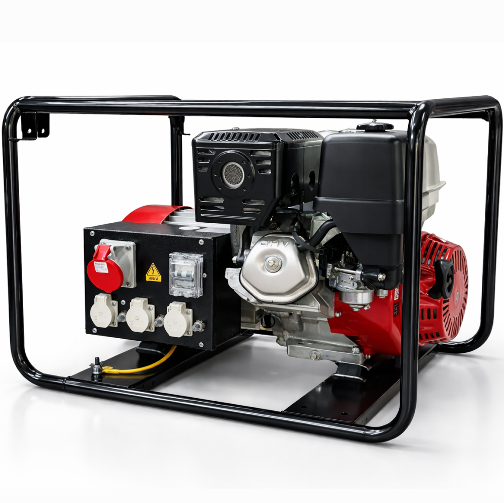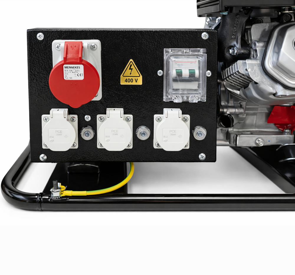 Tato robustní, benzínová třífázová elektrocentrála vysokého krytí IP54 je svým výkonem max. max. 7,0 kVA (3 f.) / 4,0 kVA (1 f.) nejvhodnějším přenosným zdrojem elektrické energie do vlhkých a nehostinných podmínek použití profesionálních hasičů, záchranářů a jiných složek, které potřebují elektrocentrálu odolnou vlhkému a prašnému prostředí. Krytí IP54 znamená, že alternátor není sice prachuvzdorně ochráněn proti částečnému vnikání prachu, ale pouze v míře, která neovlivňuje bezproblémový chod zařízení a stříkající voda při dopadu na stroj pod jakýmkoliv úhlem od svislé osy stroje nemá vliv na chod zařízení. Celá soustava je uložena na pružných silentblocích ve vyztuženém rámu, svařeném z ocelových trubek o průměru 25 mm. Ten zajišťuje mimořádnou ochranu soustavy proti případnému poškození, snadné instalaci do zásahového vozidla a zároveň slouží jako transportní madlo pro snadnou manipulaci. Vzhledem ke své hmotnosti je možné elektrocentrálu za příplatek opatřit transportním kolovým podvozkem nebo hlídačem izolačního stavu. Proto, aby alternátor produkoval napětí 400V / 230V / 50Hz, je motor opatřen automatickým, mechanickým regulátorem otáček tak, aby při jakémkoliv odběru proudy byly otáčky motoru konstantní ve výši 3000 ot./min. Elektrocentrála je opatřena zásuvkami 1x CEE (16A 400V, IP44) a 3x Schuko (16A 230V). Ovládání elektrocentrály je velice snadné a jednoduché. Stačí natankovat, elektrocentrálu postavit na vodorovnou plochu, zkontrolovat olejovou náplň motoru, nastartovat zatažením za rukojeť ručního startéru, počkat pár vteřin na ustálení chodu motoru a do příslušné zásuvky připojit napájený spotřebič. Elektrocentrála splňuje veškeré nároky na elektrickou bezpečnost a je opatřena ochrannými prvky jako je ochrana motoru proti úniku oleje nebo alternátoru proti přetížení. Robustní a pevná konstrukce rámu se nekroutí a spolehlivě tlumí působení vibrací od motoru na podklad. Snižuje se tak hlučnost elektrocentrály a práce je potom příjemnější. Údržba elektrocentrály je zcela nenáročná a spočívá v základní údržbě benzínového motoru.