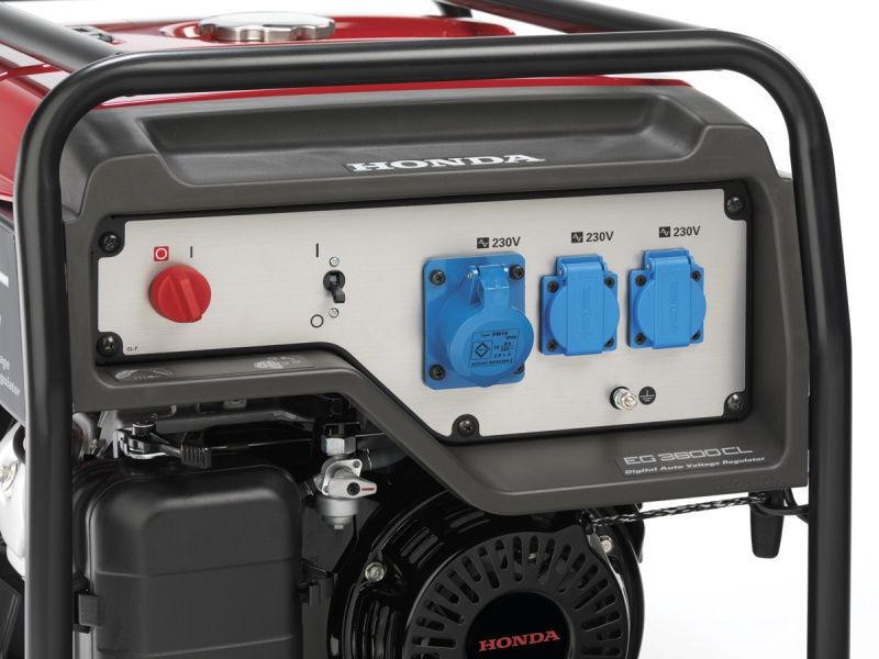 Elektrocentrála HONDA EG 3600: ryze profesionální model střední, jednofázové elektrocentrály s regulací výstupu D-AVR. Výkonný alternátor pohání profesionální motor řady GX s lehkým startem a to vše ukotveno v pevném ocelovém rámu s objemnou palivovou nádrží na 24 l paliva, částečným odhlučněním a přehledným ovládacím panelem.