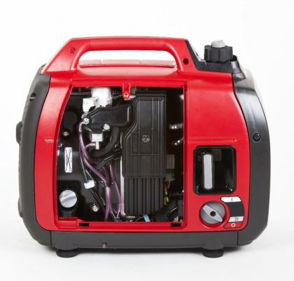 Lehká kufříková elektrocentrála HONDA EU 22i: model, jednofázové elektrocentrály s invertorem. Patentovaná technologie invertoru umožnila Hondě vyrobit kompaktní a lehký generátor malých rozměrů, ale vysokého výkonu s vyladěnou a stabilní křivkou průběhu výstupního napětí pomocí přesné elektroniky. Výkonný alternátor pohání profesionální průmyslový motor řady GX 120 s lehkým startem a to vše úhledně "zabaleno" do líbivého designu odhlučněné kapotáže.