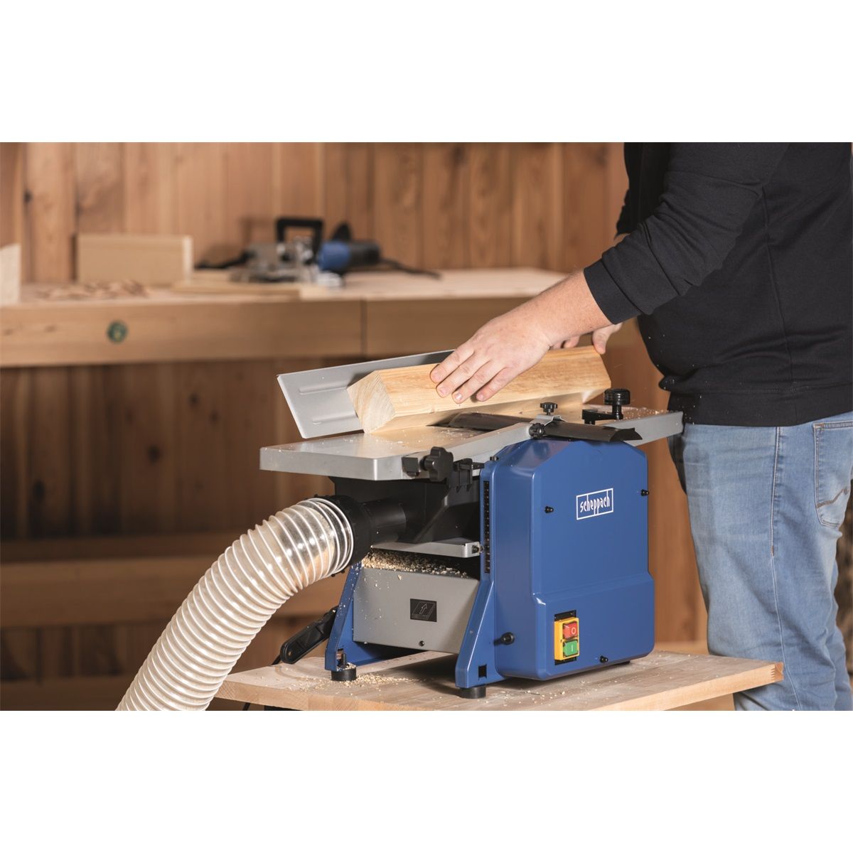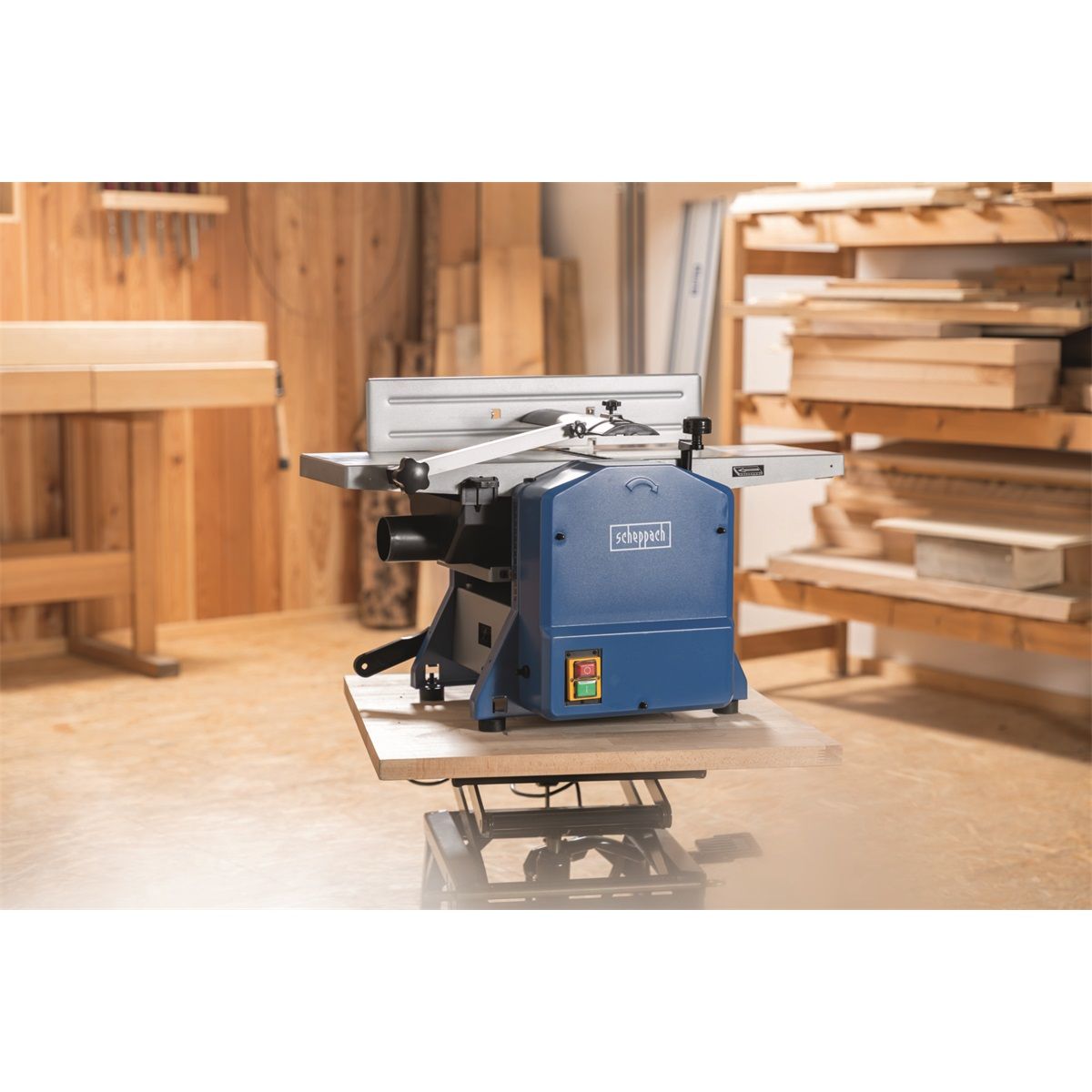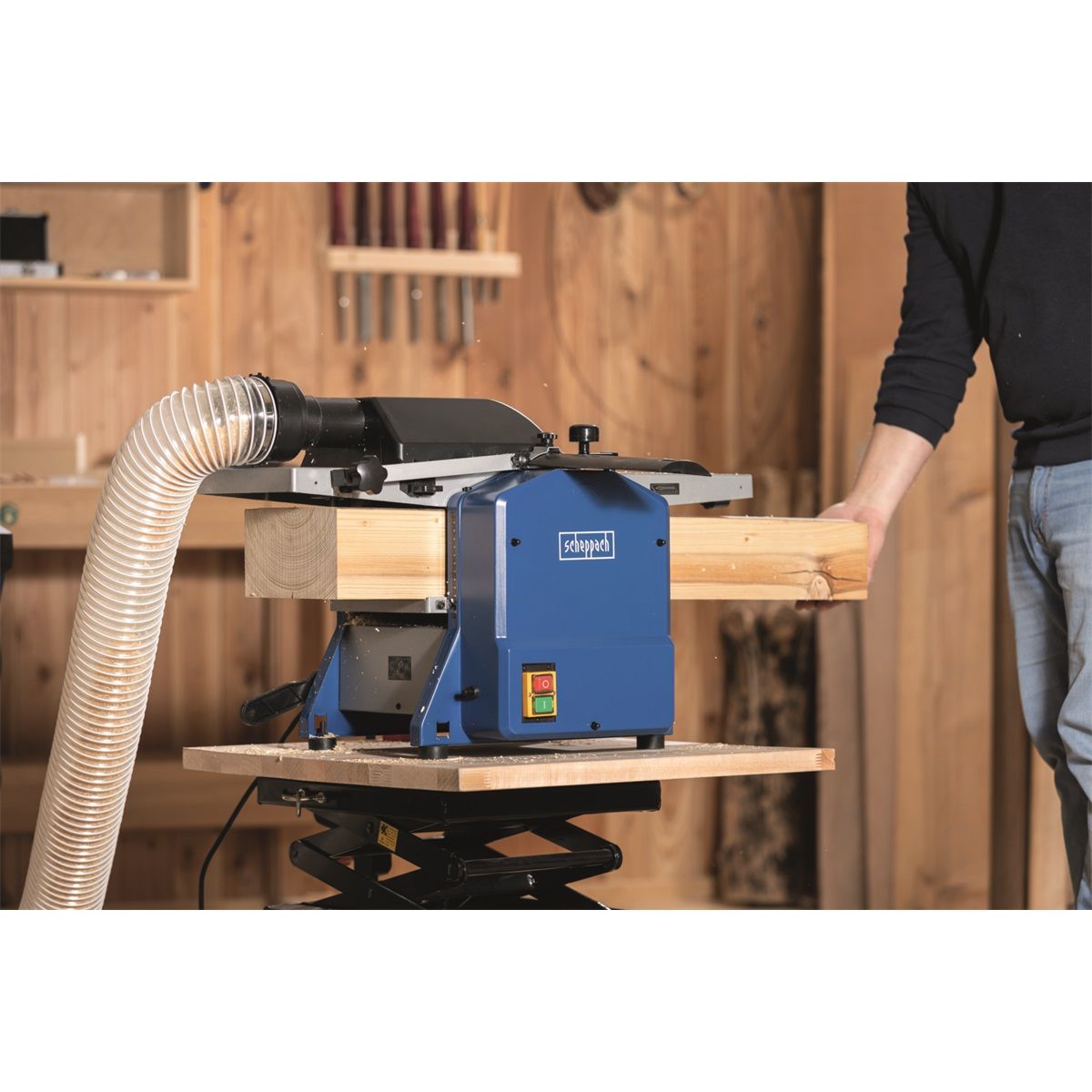 Jako všechny stroje Scheppach je i hoblovka - protahovačka SCHEPPACH HMS 850 kombinovaný stroj špičkou ve své kategorii. Má silný motor, robusní konstrukci kombinující prvky oceli a litiny, stabilní nohy zajišťující stabilitu stroje i při zpracování dlouhých kusů a dva kvalitní HSS nože umožňující hladké a rychlé opracování dřeva. Široký pracovní prostor zvládne dřevěné kusy až do rozměrů 204x120 mm. Bezpečnostní spínač a možnost odsávání hoblin patří k samozřejmému standardu.