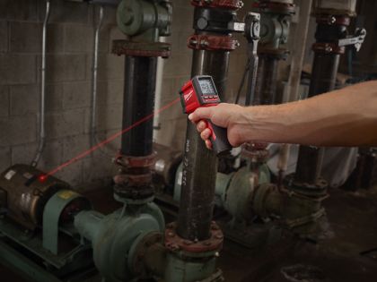 Infračervený teploměr  MILWAUKEE TEMP-GUN 2267-40 , rozsah -30 - 400°C, poměr měření 10:1, napětí 9 V, napájení 2x AA, hmotnost 300 g.