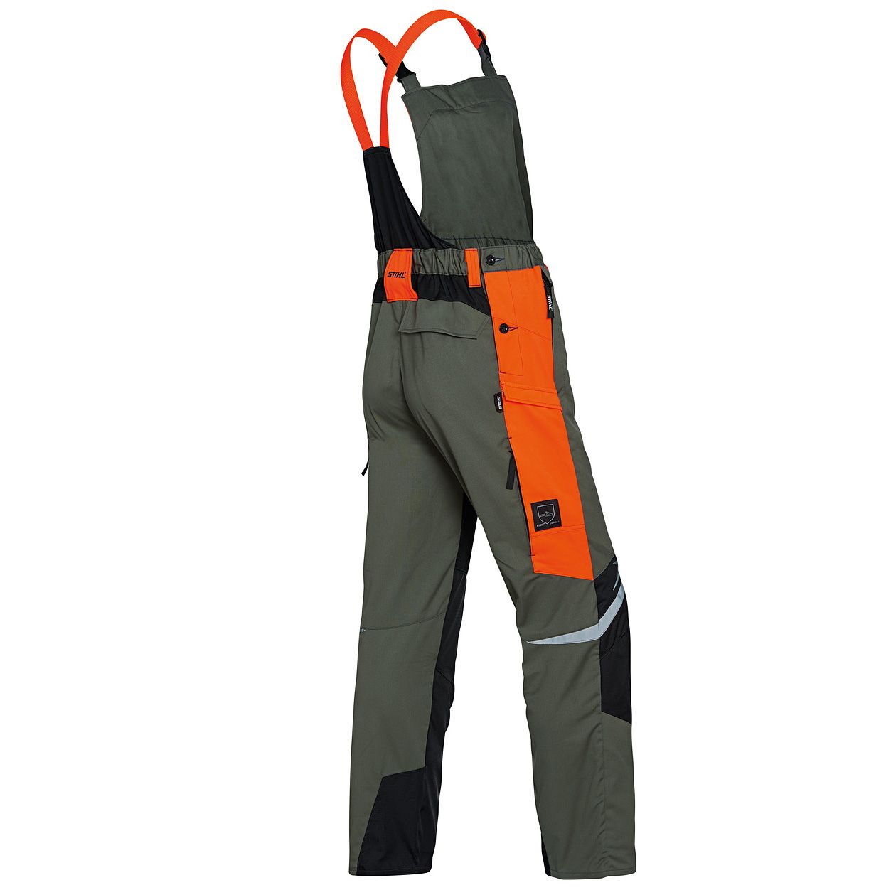 Kalhoty s laclem STIHL FUNCTION ERGO, ze zvlášť robustního materiálu pro dlouhou trvanlivost. Moderní a atraktivní design. S ověřenou ochranou proti proříznutí (EN 381), barva olivově zelená a signální oranžová, elastické vložky, větrací zipy, zesílení kolen, reflexní vložky pro dobrou viditelnost, mnohostranné kapsy, dvě přední nepřekryté kapsy se zipem. Provedení s náprsenkou. Materiál: 65% Polyester 35% bavlna.