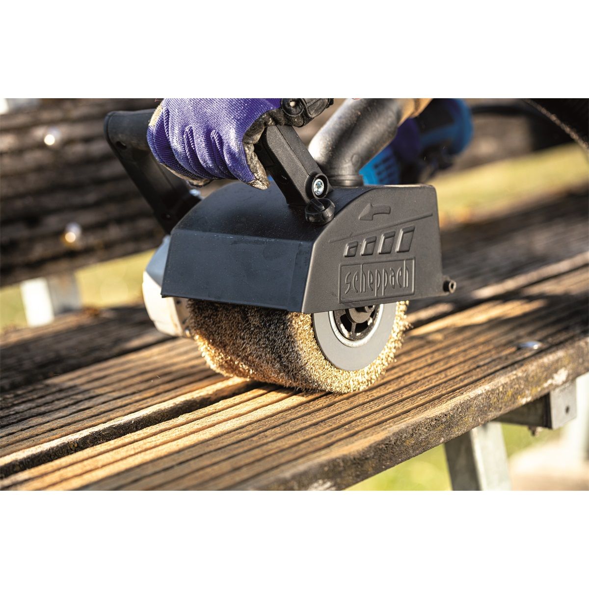 Ocelový drátěný kartáč pro kartáčovou brusku SCHEPPACH MRS 1300, vhodný na stržení a broušení nečistot z dřevěných, kamenných nebo kovových materiálů. Vhodný k odrezování nebo stržení starých nátěrů i na strukturování dřeva.