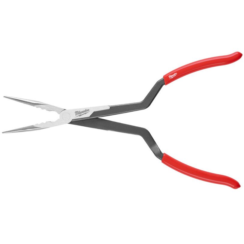 Dlouhé rovné kleště MILWAUKEE , délka 332 mm, s křížovými rukojeťmi a jedním kloubem pro lepší uchopení.