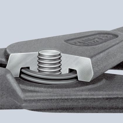Kleště na pojistné kroužky KNIPEX 4911A4 , pro vnější kroužky v otvorech, fosfátované atramentolem na šedo, rukojeti potažené plastem, hmotnost 599 g.
