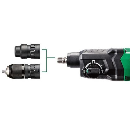 Rychlá výměna mezi sklíčidlem SDS-plus a vrtacím sklíčidlem pro efektivní využití vrtacího kladiva pro různé aplikace.