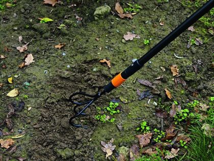Všestranný kultivátor FISKARS QuikFit pro práci s půdou. Používá se s násadami QuikFit™, mající unikátní automatický dvojitý zamykací systém - držitel ocenění Red Dot Award.