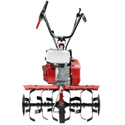 Velmi výkonný 3,6 kW motor Honda modelu 7505 VR zajišťuje silný točivý moment a konzistentní nepřetržitý výkon i při delším používání. Síla je přenášena pomocí řetězového pohonu. Díky integrovanému transportnímu kolečku můžete kultivátorem snadno manévrovat z jednoho pracovního místa na druhé. 1 rychlostní stupeň vpřed a 1 vzad zajišťují energeticky úspornou a flexibilní práci. Rotační kultivátor 7505 VR je vaším věrným společníkem při náročném nepřetržitém používání – a jeho konstrukce je navržena tak, abyste jako operátor pracovali šetrně k vašemu tělu a bez únavy. Ergonomické ovládací prvky podporují práci v jakékoli poloze,i na svazích. Rukojeť plynu je vždy dobře dostupná, řídítka lze individuálně nastavit podle výšky obsluhy a v případě potřeby je lze natočit do strany. Díky tomu můžete optimálně vyrovnávat nerovnosti, zvládat úzké prostory a dokonce již nemusíte chodit po již zpracované půdě. Kvalitní kryt kultivátoruy z robustního ocelového plechu navíc chrání obsluhu před odletujícími kameny a půdou.