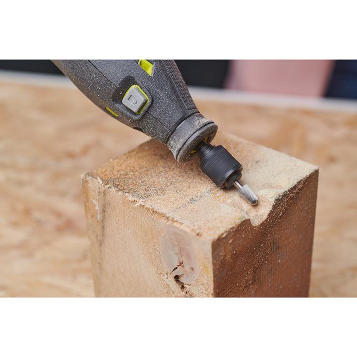 Univerzální kompatibilita s rotačním nářadím Ryobi® a jakýmkoli jiným rotačním nářadím s kapacitou kleštiny 3.2 mm (1/8”).