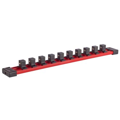 Flexibilní lišta a klipy přizpůsobitelné pro uložení nástrčných klíčů o velikostech 1/2".
