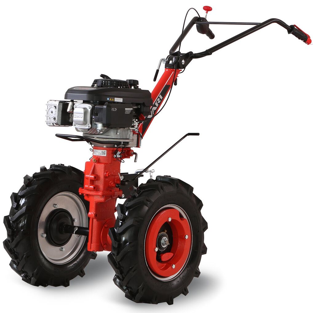 Stavebnicový malotraktor VARI IV GLOBAL je spolehlivý pomocník pro zahrádkáře a farmáře hlavně při obdělávání půdy a přepravu nákladu. Převod pohonu mezi motorem a převodovou skříní zajišťuje odstředivá spojka, která se automaticky sepne vždy při přidání plynu na vodicích rukojetích. Nové vodicí rukojeti jsou odpružené, tudíž obsluha cítí minimální vibrace do rukou. Jsou stavitelné výškově i stranově z místa obsluhy a najdeme na nich bezpečnostní vypínač zapalování, který v případě nehody či pádu obsluhy automaticky zastaví stroj. Stroj má tři rychlosti vpřed, neutrál a jednu rychlost vzad, řazení se provádí vždy za klidu stroje. Tažná náprava TN-GLOBAL má dvanáctipalcová foukaná kola s traktorovým vzorem a vnější závaží kol. Rozchod kol je 610 mm. Kola jsou vybavena uzávěrkami nahrazující činnost diferenciálu se třemi polohami. V ceně malotraktoru je i sklápěcí vozík ANV-500 s nosností 500 Kg. Pro provoz na komunikacích III. a IV. třídy lze sestavu opatřit technickým průkazem.