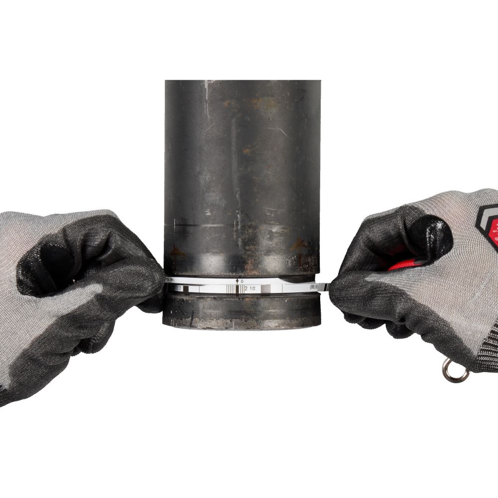 Tento metr používá speciální pásku — na jedné straně klasickou stupnici, na druhé straně tzv. „Go/No‑Go“ měřicí měřítko a stupnici v jednotkách 1/100″. Umožňuje obtočit pásku kolem trubky a přímo odečíst hodnotu jejího průměru, aniž by bylo třeba provádět výpočty z obvodu. Páska je konstruována pro přepočet obvodu na průměr bez nutnosti ručního přepočtu.