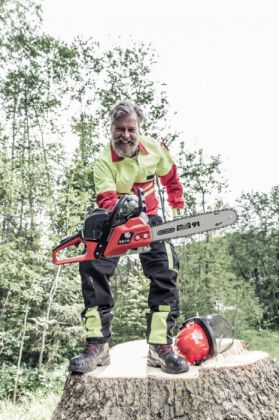 Odolná originální lišta Oregon umožňuje pracovat rychle s řeznou délkou 38 cm a vyniká dobrou ovladatelností. Postranní napínání řetězu upevněné pomocí převlečných matic usnadňuje údržbu a urychluje ideální nastavení řetězové pily. Elektronický startovací systém pomocí tlačítka a za pomocí primeru zajišťují rychlý a bezpečný start. Extra tlumení vibrací společně s ergonomicky optimalizovaným držadlem zaručují, že vibrace z hnacího ústrojí a řezací lišty nejsou přenášeny na zápěstí uživatele a lze tak dosáhnout přesných výsledku řezání. Dalším plusem je velkoobjemový vzduchový filtr a extrémně odolné pouzdro pro dlouhou životnost. Mezi další výhody patří řízení toku oleje a předehřívání vzduchu v zimě.