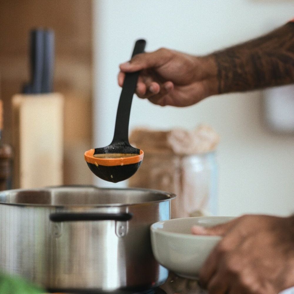 Naběračka na polévku Fiskars Functional Form™ je ideální pomocník pro snadné nabírání a servírování polévek, omáček i dalších tekutých pokrmů. Díky objemu 1 dl umožňuje přesné dávkování a pohodlné porcování. Pružné silikonové okraje se přizpůsobí povrchu nádobí, chrání jej před poškrábáním a zároveň zajišťují efektivní nabírání bez zbytečných ztrát.