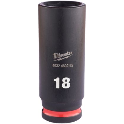 Prodloužená průmyslová hlavice MILWAUKEE SHOCKWAVE IMPACT DUTY , rozměr klíče 18 mm, upnutí nářadí 3/8" čtyřhran.