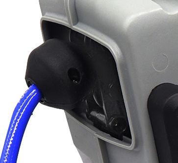 Navíjecí buben s polyuretanovou hadicí v délce 10 m s rychlospojkou a vsuvkou DN 7,4 a s integrovanou brzdou regulující rychlost navíjení hadice zpět do bubnu.