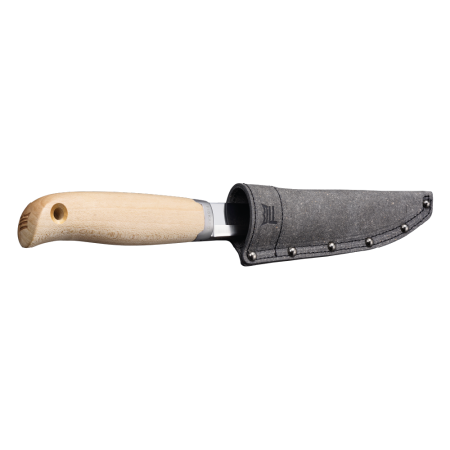 Součástí balení je šité pouzdro z recyklované kůže, které chrání čepel při transportu a skladování. Nůž tak zůstává bezpečně uložený a vždy připravený k použití.